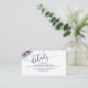 Elegant enclosure card where you can add any details information you like, from website address to reception timing and location, registry... our wording is simply an example, you are able to change it to suit your needs, and even select customise further and make any text adjustments and/or font changes. Design featuring beautiful modern hand written calligraphy elements and elegant floral corner details with attractive blue watercolor stain behind. Flowers in red, burgundy, magenta purple, dusty blue and navy hues. Back with two beautiful watercolor stain and floral detail. part of our "Celestial Blooms" collection.