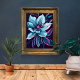 Immerse yourself in the ethereal beauty of this captivating floral artwork. The delicate petals, painted in vibrant shades of blue and pink, dance against a midnight backdrop. This mesmerising piece is a perfect addition to any modern home, bringing a touch of serenity and elegance.