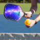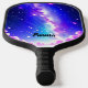 Brilliant astronomy pickleball paddle with blue and pink stars and your name customised on it.