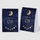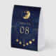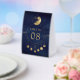 Elegant wedding table number featuring a beautiful illustration showing moon phases and modern typography.