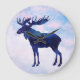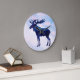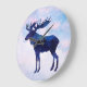 Digital watercolor celestial blue moose silhouette on pale pink and blue cloudy background