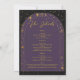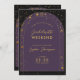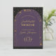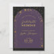 A modern, elegant bachelorette party itinerary invitation template with a celestial, moon and stars, tarot, fortune teller theme, featuring a double, gold boho arch frame and celestial elements: the sun, the moon, the chalice, constellations, stars... on a purple, black and gold colour scheme (the gold is a digital effect). A fun astrology, horoscope, zodiac, celestial themed bachelorette trip invitation - to New Orleans but not only. Perfect for any mystical, magical bachelorette party.