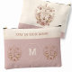 Trendy cottagecore mushroom aesthetic magical celestial fungi and moth girly accessory pouch , toiletry bag in ''rose gold' - blush pink, taupe colours, with a customised text and monogram, the light beige parts are with old canvas texture. Easily personalise the text or leave it blank. - Kate Eden Art