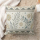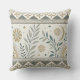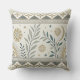 A seamless folk-art inspired pattern throw pillow combining celestial and botanical elements in earthy tones of beige, gold, teal, and cream. The central band features stylised leaves, flowering branches, crescent moons, and stars, framed by intricate geometric borders of diamonds, zigzags, and circles. With its cultural and artisan feel, this design blends nature with celestial charm, creating a timeless rustic aesthetic. Ideal for folk art enthusiasts, boho and tribal design lovers, or anyone drawn to celestial and botanical motifs. Perfect for seasonal décor, artisan gifts, and rustic-inspired celebrations.
