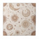 Elegant celestial botanical pattern ceramic tile featuring moons, stars, planets, mystical eyes, and delicate leafy branches in a minimal black and cream style. Ideal for astrology lovers, spiritual seekers, nature enthusiasts, and anyone who loves boho celestial aesthetics.