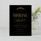 This enchanting invitation features a gold crescent moon and stars against a black backdrop, perfect for a mystical celestial bridal shower. With elegant typography and whimsical design elements, it captures the magic of the moon phases. Moons and stars, along with the bride's name, are highlighted in luxurious gold foil, adding a touch of celestial elegance. Ideal for digital bridal invitations, this invitation is perfect for the bride who loves a sophisticated and mystical touch.