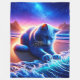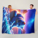 This stunning artwork features a large blue-grey cat sitting at the edge of a glowing, bioluminescent water body, a captivating addition to the “H2OArt: Beautiful Blankets & Cosy Covers” collection by AlexSandra. The background showcases a starry night sky that blends into a vibrant sunset or sunrise at the horizon, with silhouetted mountains adding depth. The surreal combination of elements, including the vibrant colours and fantastical atmosphere, creates a captivating and otherworldly landscape. Perfect for adding a touch of magic and wonder to your home decor, this blanket transforms your space into a serene sanctuary.