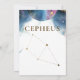 Enjoy a celestial constellation theme with our constellation table signs! Collection with many different constellations to choose from, but if you need more, please feel free to add a different constellation name to any of our table number cards (even though the card would not have the correct star formation on the bottom, it will allow you to complete your set). Cepheus constellation table sign with exquisite watercolor stains and a celestial map globe framing the "Cepheus" constellation name in a golden hue. Bellow, "Cepheus" star formation in faux golden foil. Watercolor stains and celestial map in a beautiful blend of blue, navy, turquoise, purple, magenta, fuchsia, lilac, and golden watercolor hues. Ability to change white "background-colour" to any colour you like by selecting "customise further" (please make sure to make changes in both front and back). Guide your guests to their table with our coordinating table seating chart cards or our seating chart sign. Part of our "Mystic Garden Celestial Collection" with various coordinating products available, including table seating chart cards and seating chart signs.