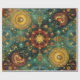 A luxurious seamless Christmas pattern showcasing intricate gold starbursts, celestial ornaments, swirling jewel-tone accents, and festive holiday detailing. Perfect for custom holiday wrapping paper, fabric, decor, gift items, invitations, and seasonal accessories.