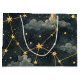 Mystical constellation pattern gift bag featuring golden stars, celestial lines, and dreamy clouds across a dark night sky background. Ideal for astrology lovers, stargazers, astronomy fans, spiritual seekers, and anyone who loves cosmic and celestial style.