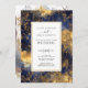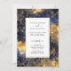 A celestial cosmic starry night and planets wedding invitation. Enchanting and ethereal in gold and deep blues.