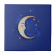 Celestial Crescent Moon with Face Gold Dark Blue Ceramic Tile