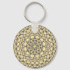 A lace-like concentric circle mandala in dark blue with bright blue and gold star-like dots spangled among the layers makes for a fun, design that brings to mind a starry night sky.