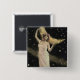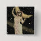 Vintage photograph showing a lovely lady in long gown standing in a dramatic pose before a crescent moon.