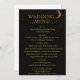 Add elegance to your reception with this celestial black and gold wedding menu, featuring a starry night backdrop with shimmering moon and constellation accents. Designed in refined script and serif fonts, the menu highlights each course from soup and salad to appetizers, main entrées (chicken, beef, fish, and vegan options), dessert, and a signature drink. Perfect for celestial weddings, black-tie events, or evening celebrations, this customisable menu coordinates beautifully with matching invitations, RSVP cards, Save-the-Dates, thank-you notes, and enclosure cards. Printed at 350 DPI on premium cardstock for a luxurious finish.