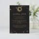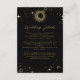 Celestial mystical personalised wedding enclosure card featuring galaxy milky way midnight sky with star dust, crescent moon and other astrological symbols in black and golden colours. This card is easily editable. If you need help with the customisation of this card or you need more matching products for this collection kindly message me via Zazzle.