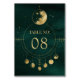 Celestial Emerald Gold Moon Phases Wedding Table Number