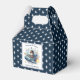 Send guests home with cosmic souvenirs in this Celestial Event Favour Box! This sturdy gable-style box features an all-over navy starfield pattern and a customisable panel showcasing your little astronaut piloting a retro rocket amid a swirl of stars. Perfect for “First Trip Around the Sun,” “One Giant Leap,” or “Two the Moon” celebrations, it’s printed on eco-friendly cardstock, holds small treats or toys, and assembles in seconds. Add your child’s name and party date for a personalised, memorable party favour presentation!