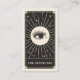 This business card features a tarot card style design in a black and cream colour palette. On the reverse is space for details about how to care for lashes after a treatment. The illustration shows a mystical eye with long eyelashes surrounded by twinkling stars. This would be perfect for any beautician, salon or lash specialist who prefers an alternative style business card and wants to make their lash aftercare card memorable.