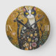 This image features a stunning cat rendered in the artistic style reminiscent of Gustav Klimt. The cat, with its striking yellow eyes, white and black fur, and intricate, swirling patterns on its body, exudes a regal and mysterious aura. The background is richly detailed with golden hues, organic shapes, and floral motifs, blending seamlessly into the cat's figure, which is adorned with ornate circular patterns and delicate embellishments. The overall effect is a mesmerising fusion of natural beauty and luxurious, ornamental design.