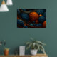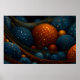 A mesmerising digital artwork featuring glowing blue and orange spheres nestled among swirling, ribbon-like structures. The composition evokes a fantastical universe or microscopic world, rich in texture and depth. Perfect for lovers of abstract art, cosmic themes, and vibrant visual storytelling.