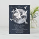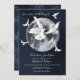 Pretty Celestial watercolor full eclipse moon and stars wedding invitations with beautiful doves. Great for an evening wedding or a wedding near a full moon. Dark midnight blue watercolor background.