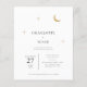 A minimalist modern celestial wedding invitation features a simple and elegant design. It includes a gold foil moon and stars that gently sparkle, set against a clean background. The invitation uses classic serif typography, which adds a traditional and formal touch with its neat and clear style. The combination of modern design, shiny gold details, and timeless fonts makes the invitation both beautiful and inviting, perfect for announcing a special and elegant wedding day.