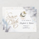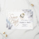 Celestial gold moon, and stars on watercolor background. Beautifully save the date that can be customised with your name. Select the "customise" button to change the font style, colour, and size.