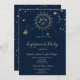 Celestial gold sun and moon, and stars on navy blue background. Beautiful invitation that can be customised with your name. Select the "customise" button to change the font style, colour, and size.