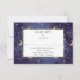 A beautiful celestial wedding srsvp card featuring gold, moons and stars and monogram initials on the reverse with a midnight blue background and modern elegant typography. Designed by Thisisnotme©