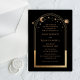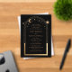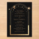 Celestial Gold Sun Moon Astronomy Wedding Acrylic Invitations features gold sun, moon and stars with a golden frame on a black acrylic background. Inside is your custom wedding invitation information. Personalise by editing the text in the text boxes. Designed for you by Evco Studio www.zazzle.com/store/evcostudio