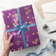 Celestial Golden Stars on Pink Galaxy Background Wrapping Paper