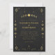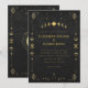 This Celestial Gothic black and gold wedding invitation features an elegant astrology-inspired design with luminous lunar phases, geometric tarot-style detailing, and refined antique gold accents set against a deep charcoal background.