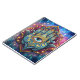 An artistic and detailed representation of the hand of Fatima, a powerful symbol of protection and good fortune, adorned with intricate designs and an all-seeing celestial eye.