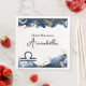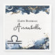 These custom birthday party napkins feature a celestial horoscope theme in shades of blue and gold. The top and bottom borders feature a celestial night sky pattern with gold accents and a crescent moon. A Libra horoscope symbol is printed in the bottom left beside. A sample "Happy Birthday" message is printed across the centre followed by a sample name printed in an elegant script font. You can personalise the napkins to include your own custom name or other text.