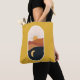 A setting sun and crescent moon are the heroes of this stunning design. The background of honey mustard yellow is offset against the black, orange and red tones of the sky and mountain landscape. Inspired by mid century modern design.