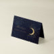 Our "Celestial Gold Wedding" collection features a beautiful crescent moon with gold stars in various designs on a velvet midnight blue background paired with elegant fonts. Easy to customise and you can choose among many more matching items from this collection in our store.