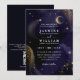 Celestial Midnight Blue Stars Moon QR Code Wedding Invitation