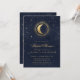 Our "Celestial Gold Wedding" collection features a beautiful crescent moon with gold stars in various designs on a velvet midnight blue background paired with elegant fonts. Easy to customise and you can choose among many more matching items from this collection in our store.