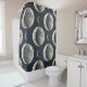 Elegant moon phase and celestial pattern shower curtain featuring crescent moons, stars, and radiant lunar details on a dark background. Ideal for astrology lovers, moon enthusiasts, spiritual seekers, stargazers, and fans of mystical celestial style.