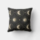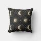 Elegant moon phase and celestial pattern throw pillow featuring crescent moons, stars, and radiant lunar details on a dark background. Ideal for astrology lovers, moon enthusiasts, spiritual seekers, stargazers, and fans of mystical celestial style.