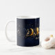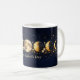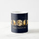 A morning ritual as beautiful as the night sky. This stunning celestial moon phase mug features the full lunar cycle wrapping all the way around — from new moon to waxing crescent, glowing full moon and beyond — set against a deep midnight navy background with delicate white florals and scattered gold stars.