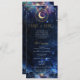 The Celestial Moon Phase Wedding Program showcases a stunning blue and purple galaxy background adorned with a gold crescent moon that holds each persons first initial. With elegant metaphysical embellishments, this enchanting card includes all the moon phases and elements. It beautifully presents all the details of your wedding ceremony, guiding your guests through each magical moment.