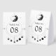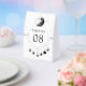 Elegant wedding table number featuring a beautiful illustration showing moon phases and modern typography.
