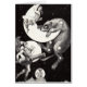 This vintage illustration is about celestial figures. They are shown as mythological gods and goddesses. The vintage constellation image is from a book published in the 1800s. The Moon Goddess, called "Alla Luna" shows the Goddess Luna, the Roman moon goddess, clinging onto the top of her crescent moon, apparently running from a star-clad bear played by Ursa Major, the Great Bear constellation, and a Roman soldier casually strolling in, playing Mars. Relaxing in the back atop a mountain, reading "the gazette," is Mercury. This constellation illustration is a wonderful vintage star and moon image perfect for the astronomer in your life. It's a dreamy gift for lovers of Roman mythology as well as a gift for astronomers who have a deep appreciation for funny vintage astronomy illustrations!