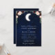 Celestial Wedding invitation. Watercolor blue night sky with stars and the moon. Burgundy Blue Pink Floral. Greenery Eucalyptus Leaves. Photo Back.
