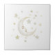 Celestial Moon with Face & Stars Gold Silver White Ceramic Tile