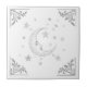 Celestial Moon with Face & Stars Silver and White Ceramic Tile