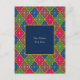 This celestial postcard design has your custom custom on a dark blue square surrounded by a multicolored Moroccan tile design. Trimmed with a gold lattice and moons and stars, your message will be delivered in an elegant style. Type a longer message and mailing address on the back or leave it blank to write by hand. This postcard is a convenient and economical way to keep in touch with friends, family, and customers.