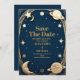 Celestial Navy Gold Crescent Moon Wedding Save The Date
